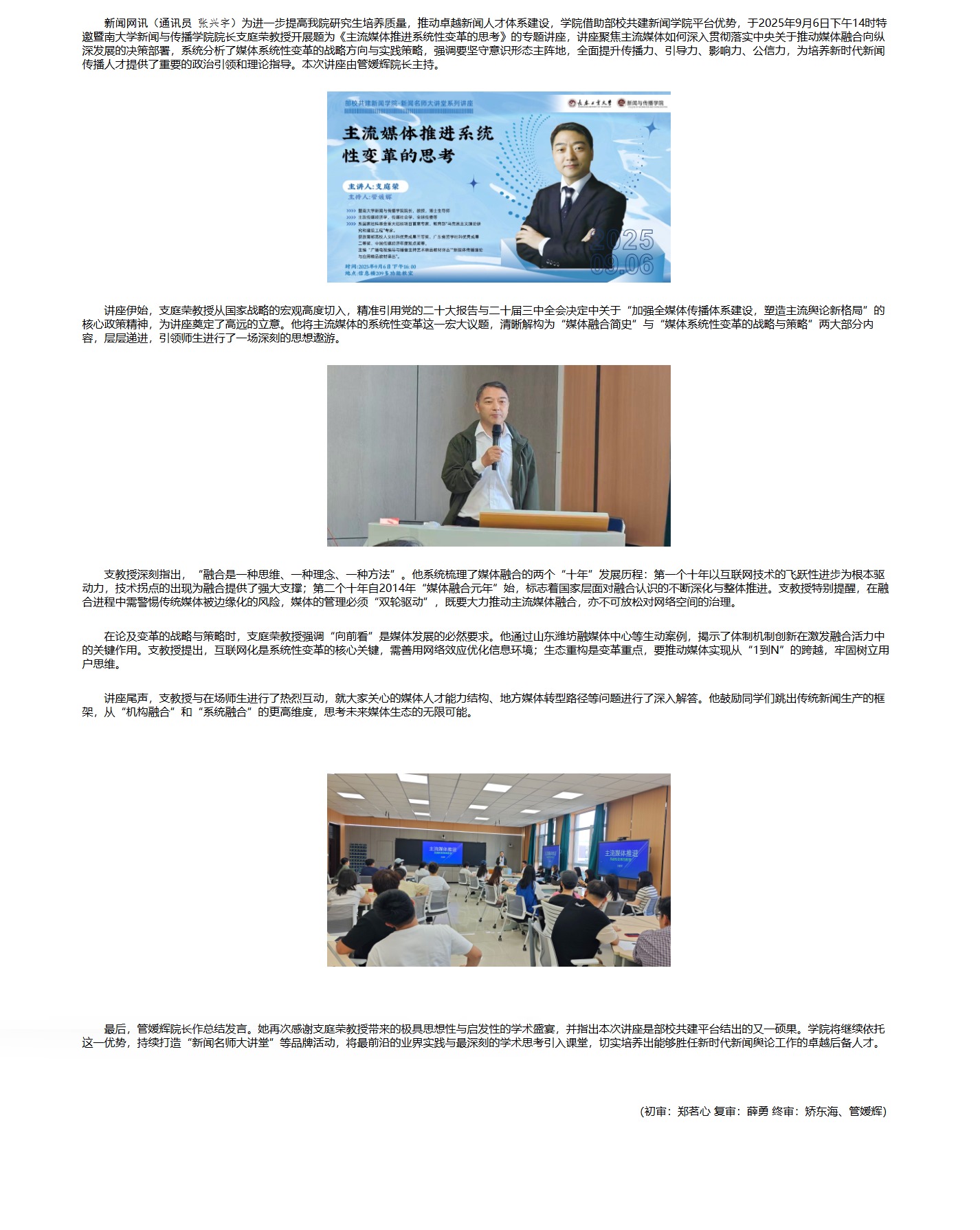 欧洲杯-欧洲杯下注平台 欧洲杯 部校共建新闻学院——新闻名师大讲堂系列讲座《主流媒体推进系统性变革的思考》