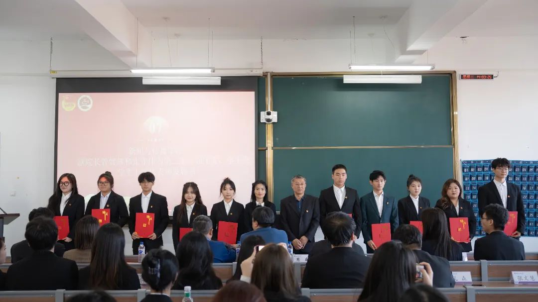 于301教室隆重召开第二十一届团委、学生会暨第七届研究生会换届大会。学院党委书记矫东海、院长吴德胜、党委副书记周巍、副院长管媛辉、副院长张守伟、学院团委书记崔悦、辅导员李晓晗出席此次会议。出席本次大会的还有经济管理学院学生会执行主席刘森源、第二十届团委学生副书记陈薪竹、学生会主席团执行主席于淇、主席团成员孟禹含和崔宸赫。本次大会由第二十一届学生会主席团成员苗文博主持。