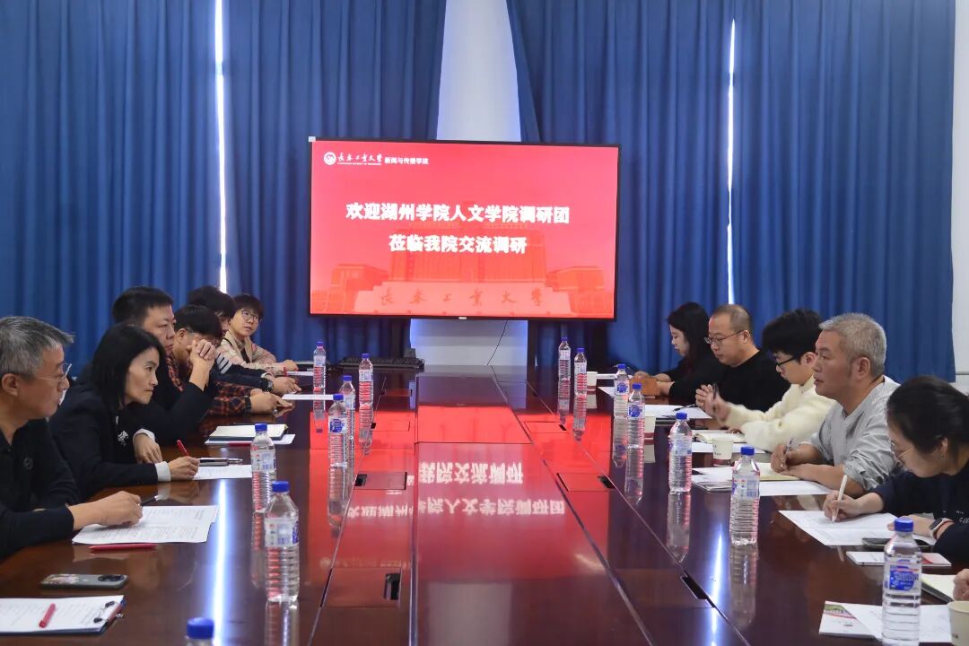 党委书记矫东海代表学院全体师生,对湖州学院人文学院各位老师的远道而来表示热烈欢迎。双方重点围绕学科发展、人才培养等核心议题深入研讨,共话新文科建设路径。矫东海简要介绍了学院的发展历程,重点分享了学院在打造党建特色品牌、加强党业融合、发挥党建在评估工作中的引领作用以及党建工作多年取得的显著成绩,并且高度评价了湖州学院在应用型人才培养、模式创新及地方文化资源开发利用等方面积累的宝贵经验,并期待以此次交流为新起点,进一步加强双方的深层次合作。