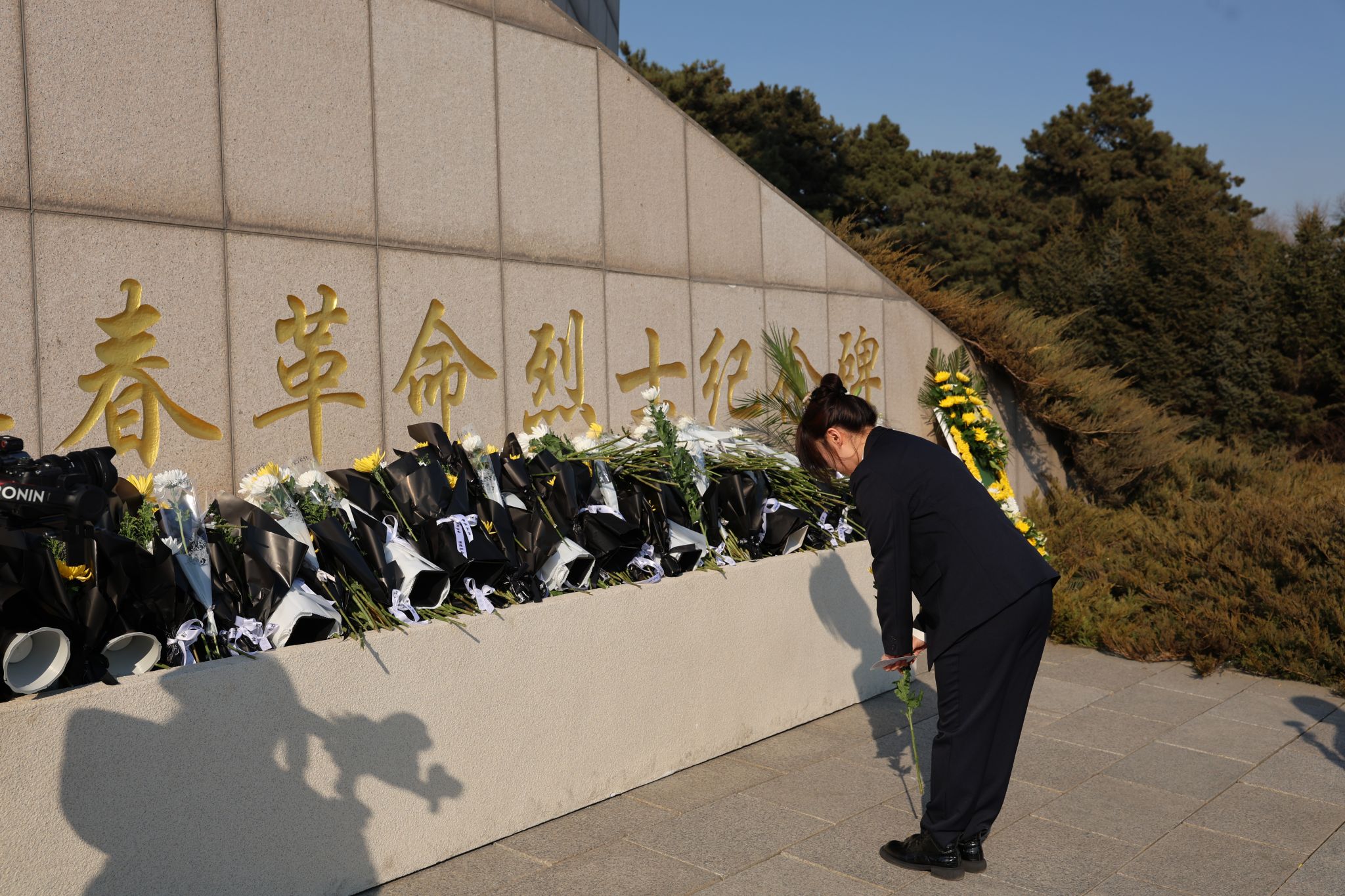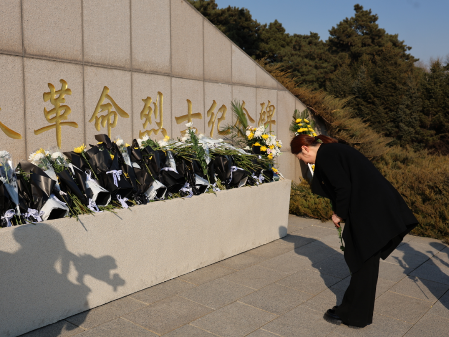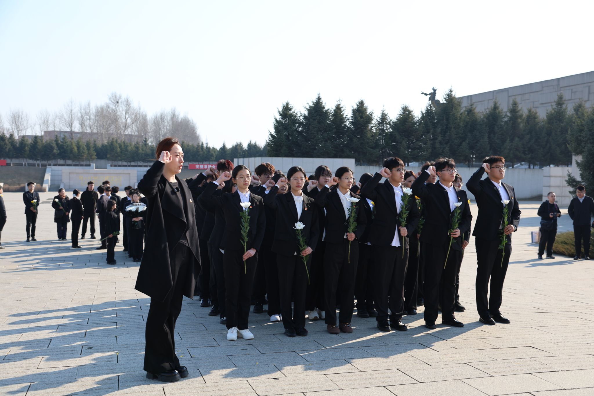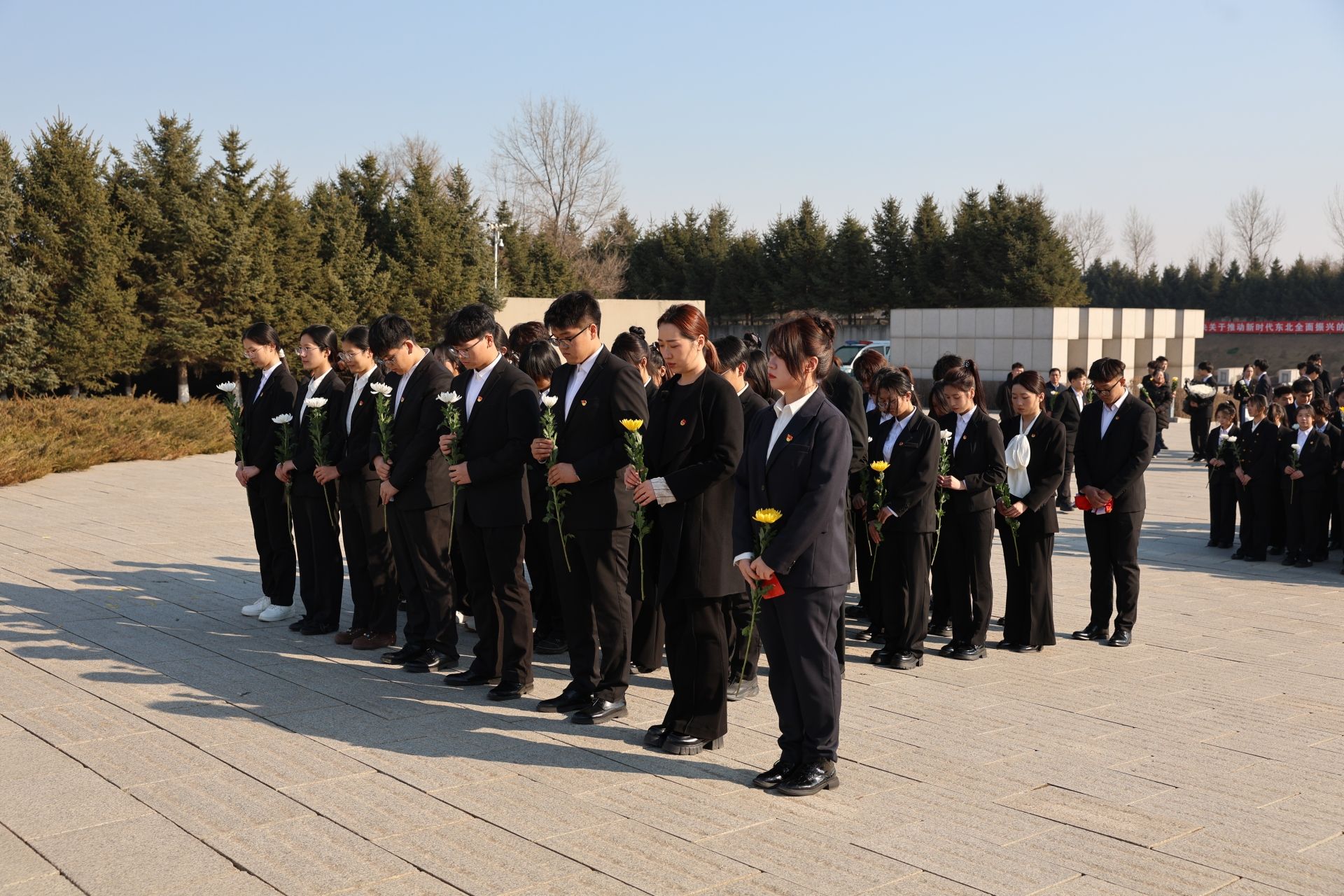 宣誓结束后,师生手持菊花,有序走向纪念碑前,轻轻献上鲜花。一朵朵鲜花承载着敬仰与怀念,诉说着青年学子对英烈的深切告慰,同时也象征着英烈精神永远绽放、永不褪色。