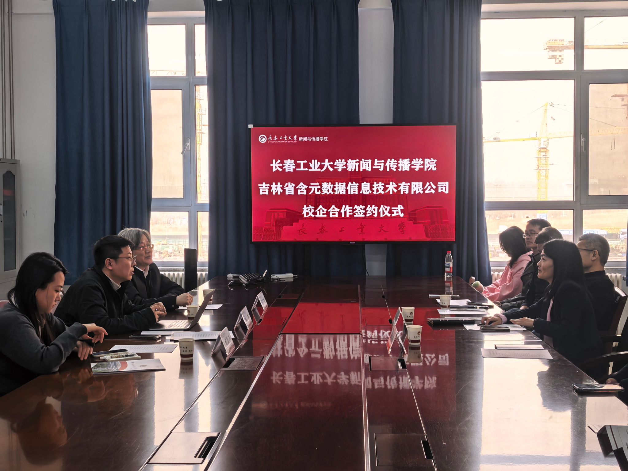 与吉林省含元数据信息技术有限公司校企合作揭牌签约仪式在北湖校区东区新传楼311会议室隆重举行。