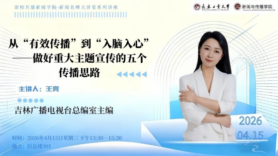 隆重邀请到吉林广播电视台总编室王亮主编为学生们开展了一场主题为《从“有效传播”到“入脑入心”——做好重大主题宣传的五个传播思路》专题讲座。